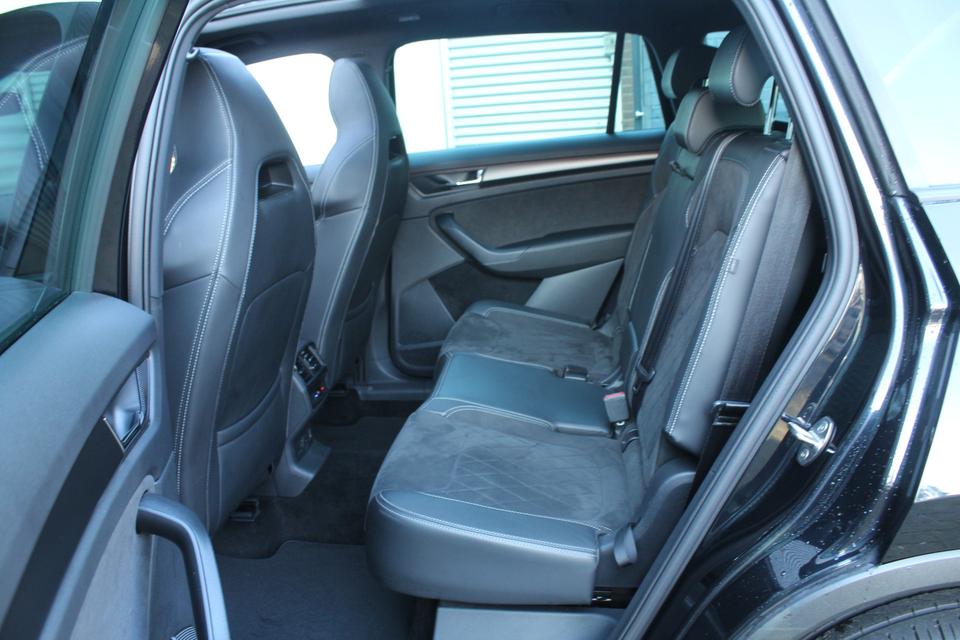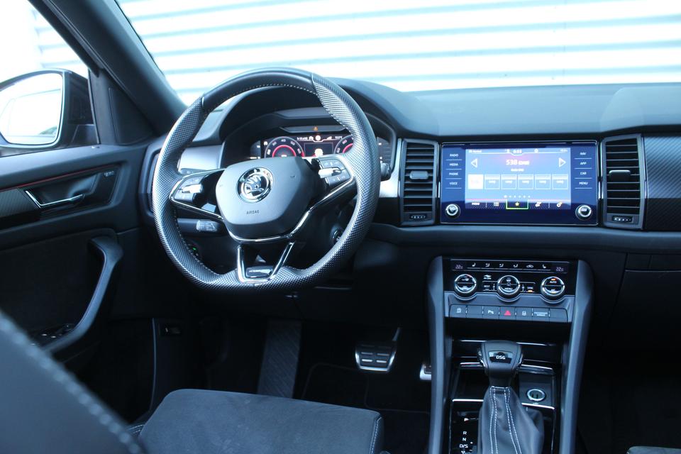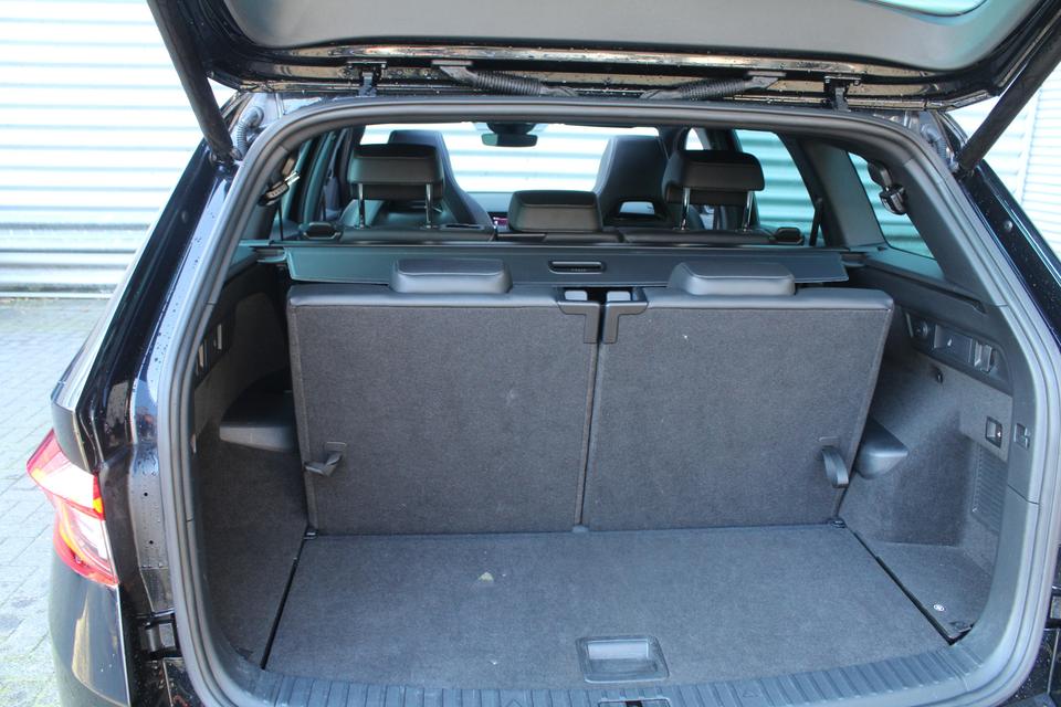 U rijdt gemakkelijk, comfortabel en zonder zorgen met deze ŠKODA Kodiaq. De krachtige benzinemotor van deze auto is gekoppeld aan een automatische transmissie. Deze ŠKODA Kodiaq heeft verwarmbare voorstoelen, voor zowel bestuurder als bijrijder. De strakke sportstoelen hebben niet alleen de looks, maar bewijzen ook hun functie als u wat meer vraagt in de uitdagende bochten. Dat noemen ze nou een ruimtelijk effect: het elektrisch bediende glazen panoramadak. De achterklep opent automatisch met een druk op de knop. Handig als u met volle handen staat. Met z'n allen erop uit - dat kan in dit geval letterlijk ruim opgevat worden, want de derde zitrij is echt een aanwinst. Ook 20 inch lichtmetalen velgen, LED koplampen, dakspoiler, donker getint glas achter, in delen neerklapbare achterbank en LED-achterlichten zijn aan boord.